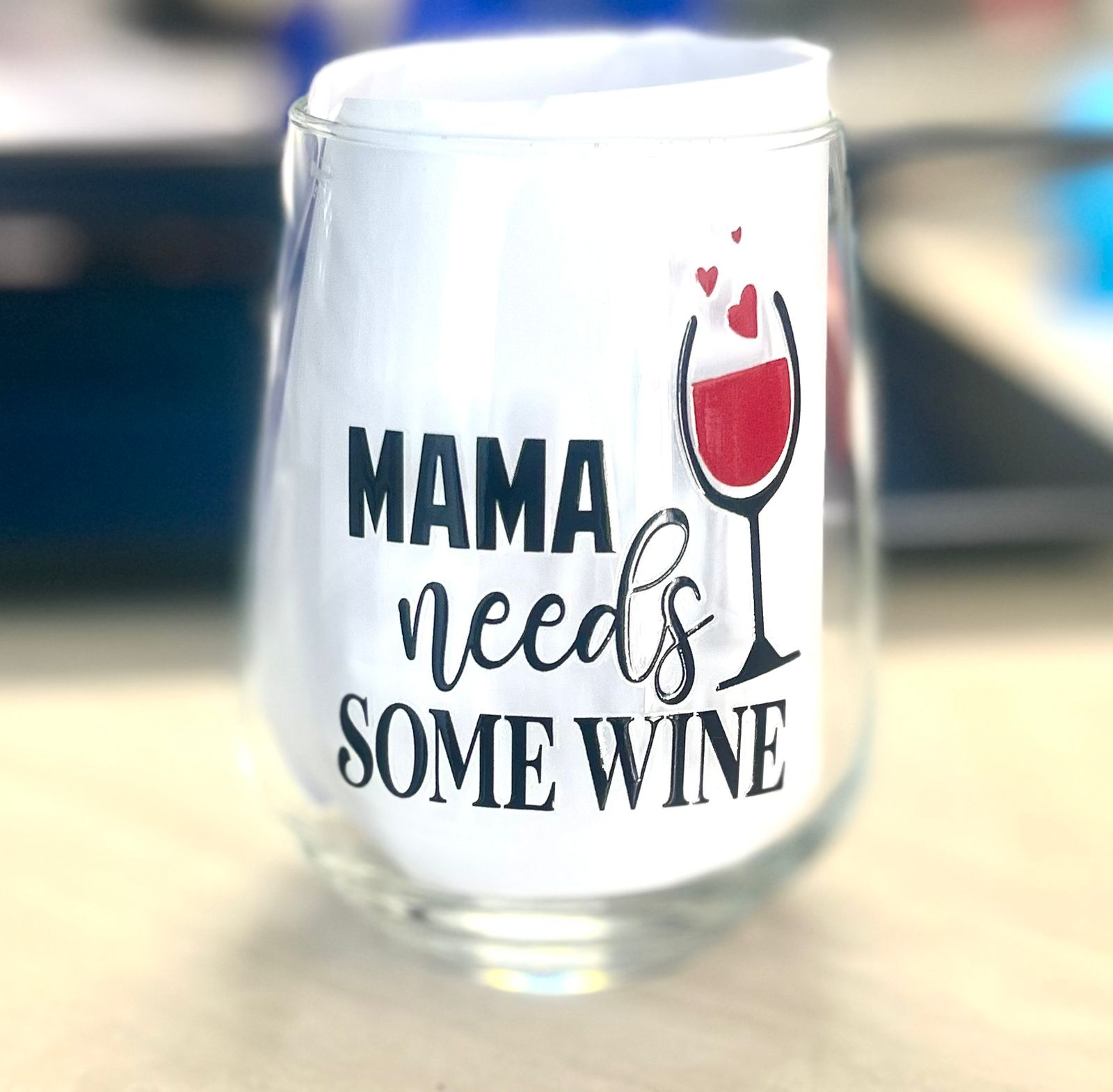 Mama Needs Wine, Stemless wine glass